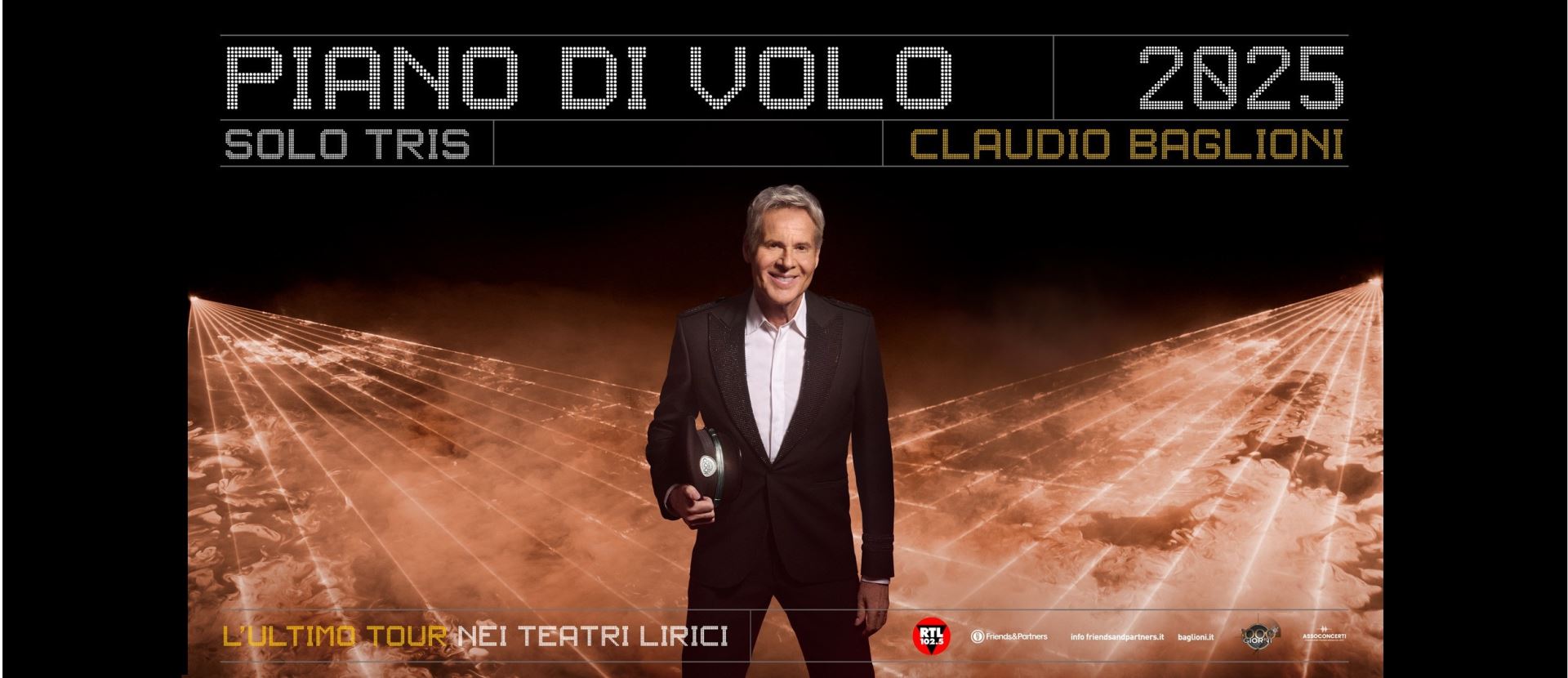 Prenota il posto in bus navetta condiviso per una serata in musica al concerto di CLAUDIO BAGLIONI - PIANI DI VOLO 2025 che si terrà a Palermo - Teatro Massimo